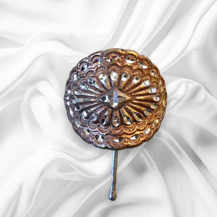 This hand crafted pewter pony tail cover slides inside the pony tail band in your hair. It has diamond cuts that reflect light and accent the details of the piece. You’ll love how it looks in your hair and you’ll get loads of compliments. Lead free!