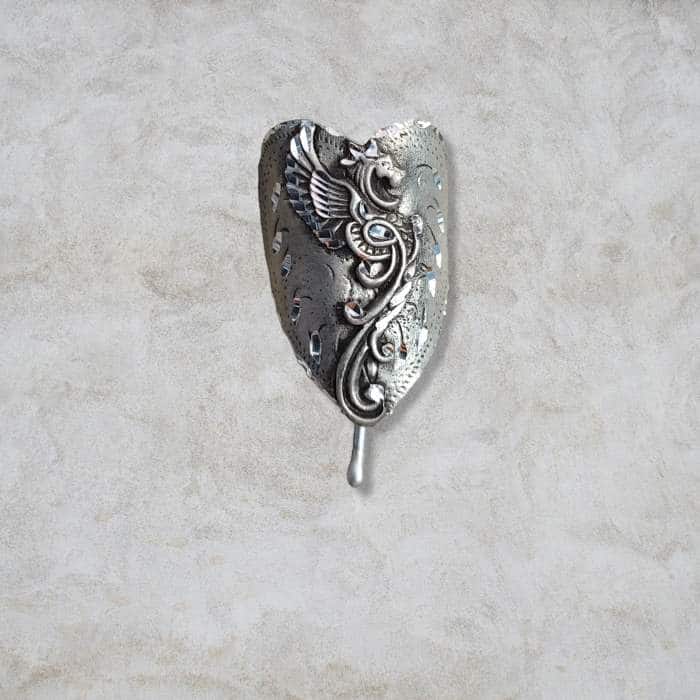 This beautiful Dragon Shield design is a handcrafted pewter pony tail cover, that slides inside the pony tail band in your hair. It has diamond cuts in it to reflect light and accent the details of the piece. You’ll love how it looks in your hair and you’ll get loads of compliments. Lead free!