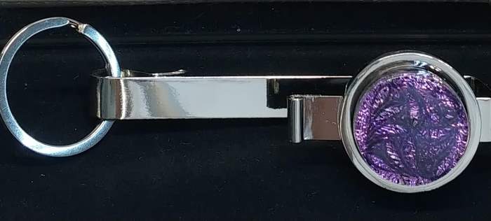 Key finder has 1″ round dichroic glass insert with a Celtic pattern added to it.